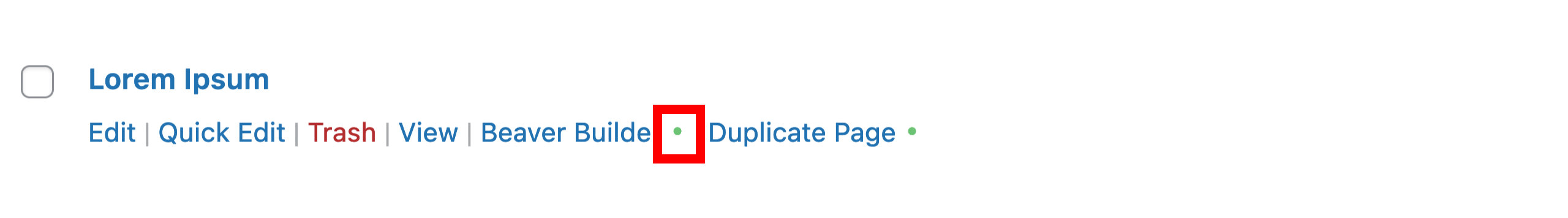 This ensures that there is an existing Beaver Builder layout for this page. If there is no existing Beaver Builder layout, the dot is light gray or white.