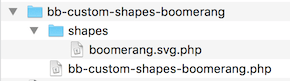 Here's a screenshot of the folder structure created for the boomerang example to help visualize the following instructions. The example plugin is named bb- custom-shapes-boomerang.
