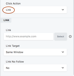 When you set Click action to Link, a Link section opens.