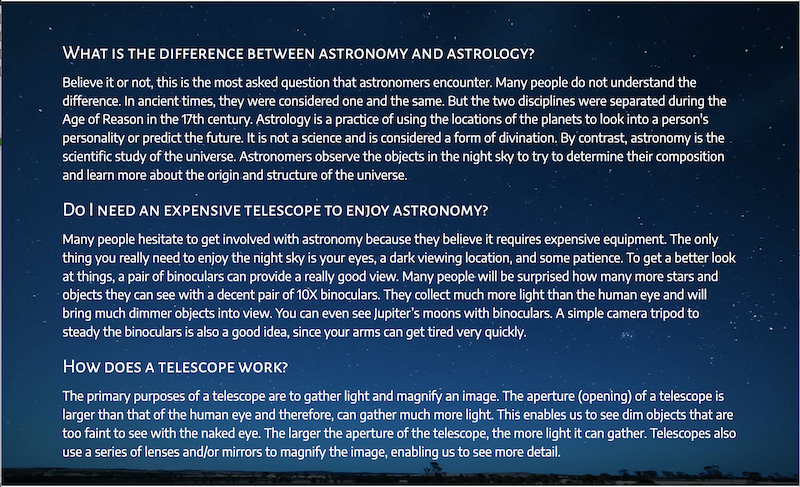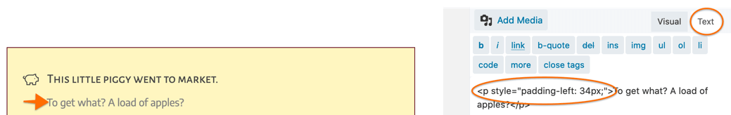 • For the content text of each list item, go to the Text tab of the text editor and wrap the content with an HTML tag such as <p>, then add a style attribute and adjust the number of pixels of padding to indent the content to what you want, as in this example: