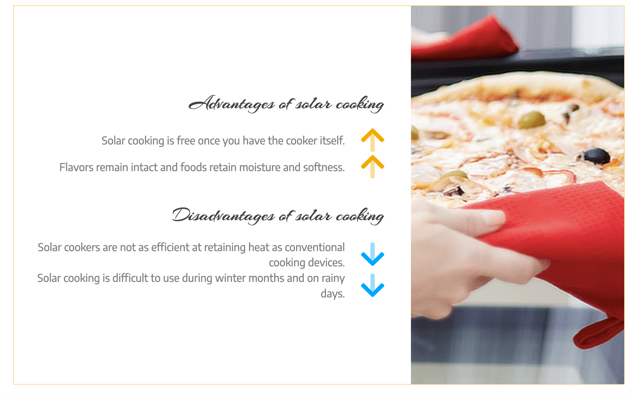 Here's another example that shows two List modules, one for the list of advantages and one for the list of disadvantages, both with content and icons but no headings. The arrow icons are from the Font Awesome set and are displayed to the right of the content. The headings for each list are Heading modules.
