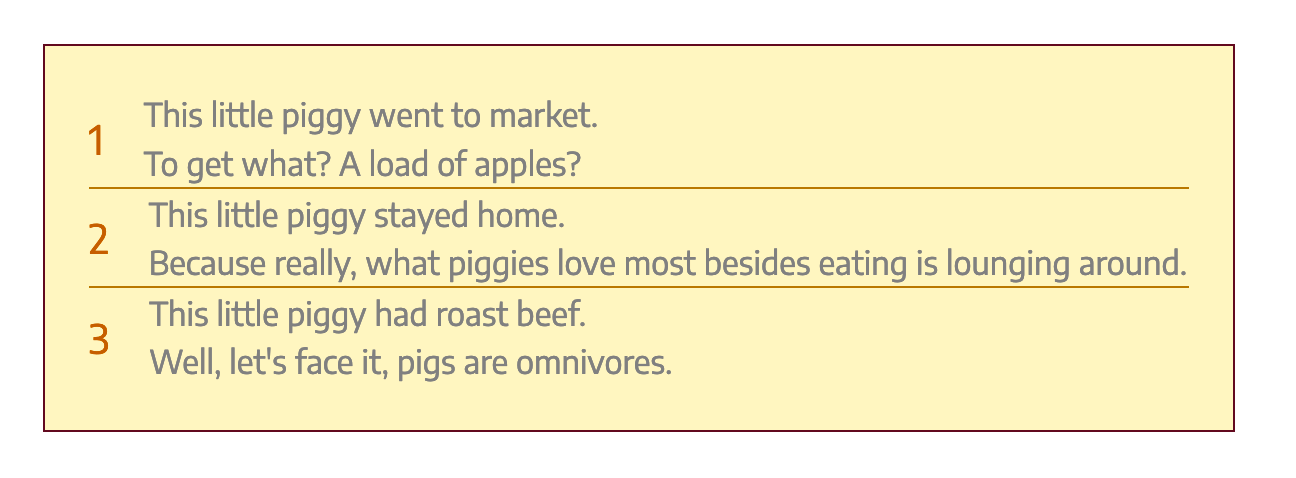 See the settings below for more information about how to control the placement and style of the headings, content, and markers of items.