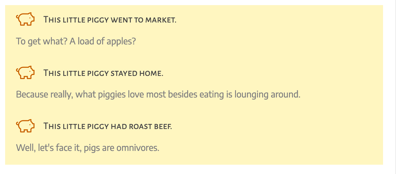 Here's an example of an unordered list with both headings and content and list markers displayed to the left of headings.