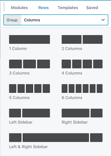 • In the Content panel, click the Rows tab and drag the column configuration you want into the layout.