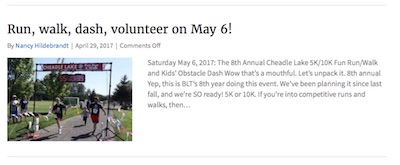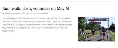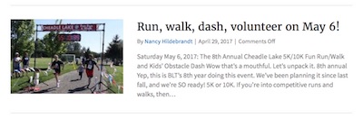 • The featured image can be set to a thumbnail, with the post info and excerpt appearing to the left or right of it, as in this screenshot: