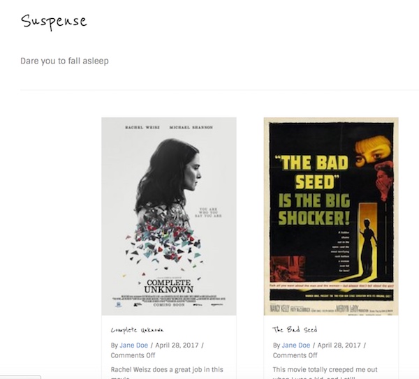 Now when you click any of those movie types in the nav menu, the archive will open with that Themer layout.