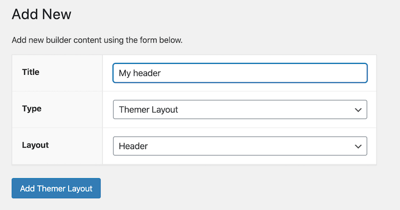 We'll use My header as the layout title in this tutorial. - In the Type field, select Themer layout.